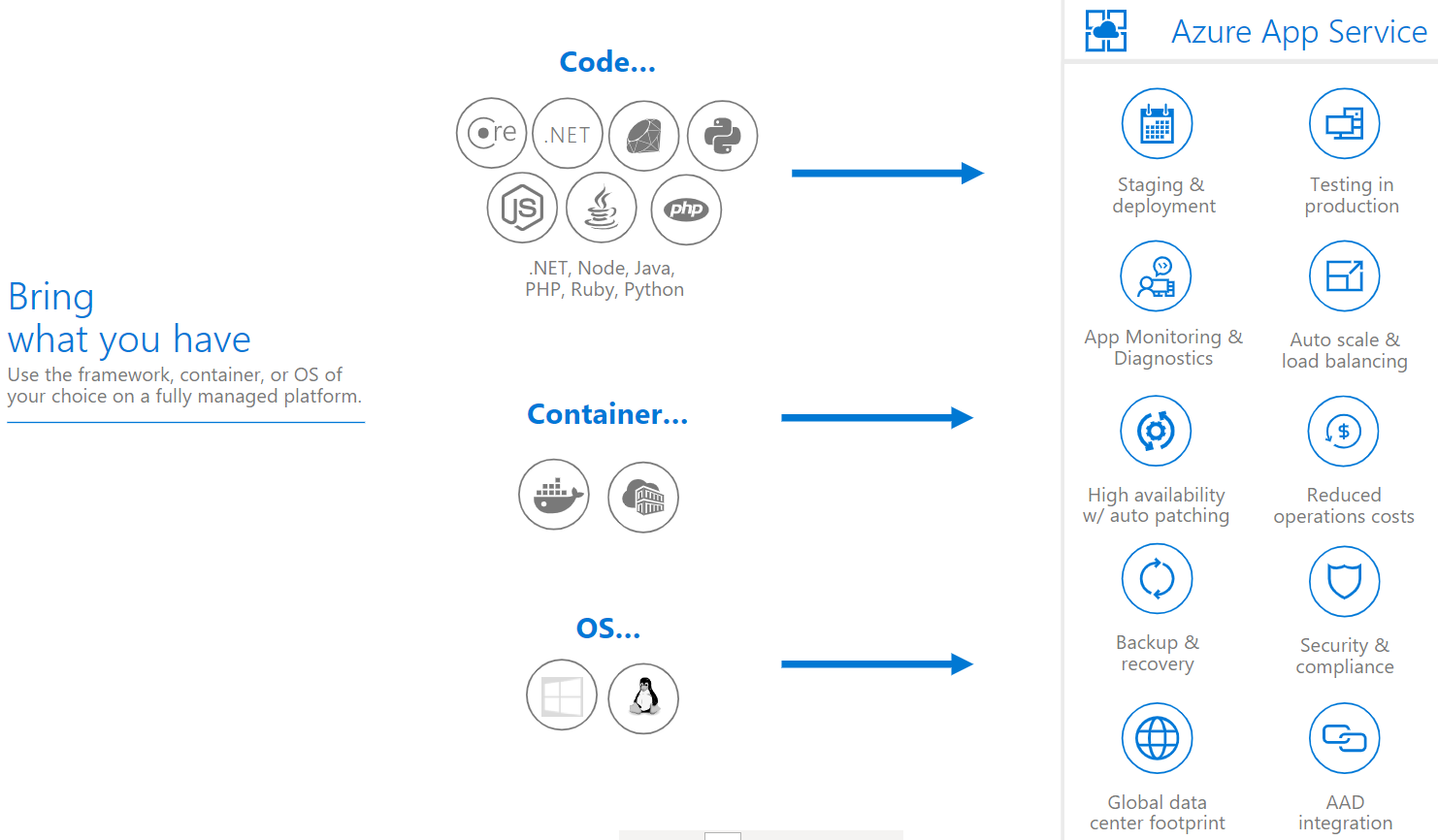 | Serverless | Platform for running and scaling apps where almost all of the operations tasks are managed by the cloud provider. Optimized to let developers focus on code and business value. | |