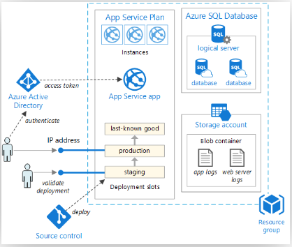 | Basic Web | ✓Service plan ✓Deployment ✓Authentication ✓SQL DB ✓Diagnostics | |