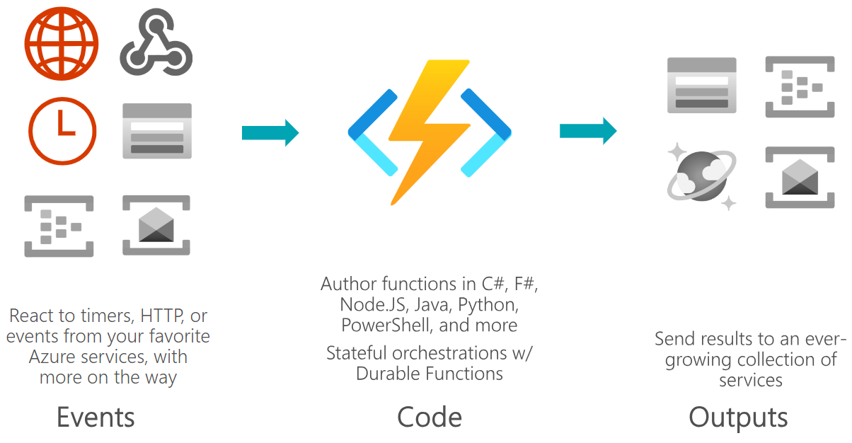 Event driven & scalable Functions respond to predefined events, and are instantly replicated as many times as needed. |
