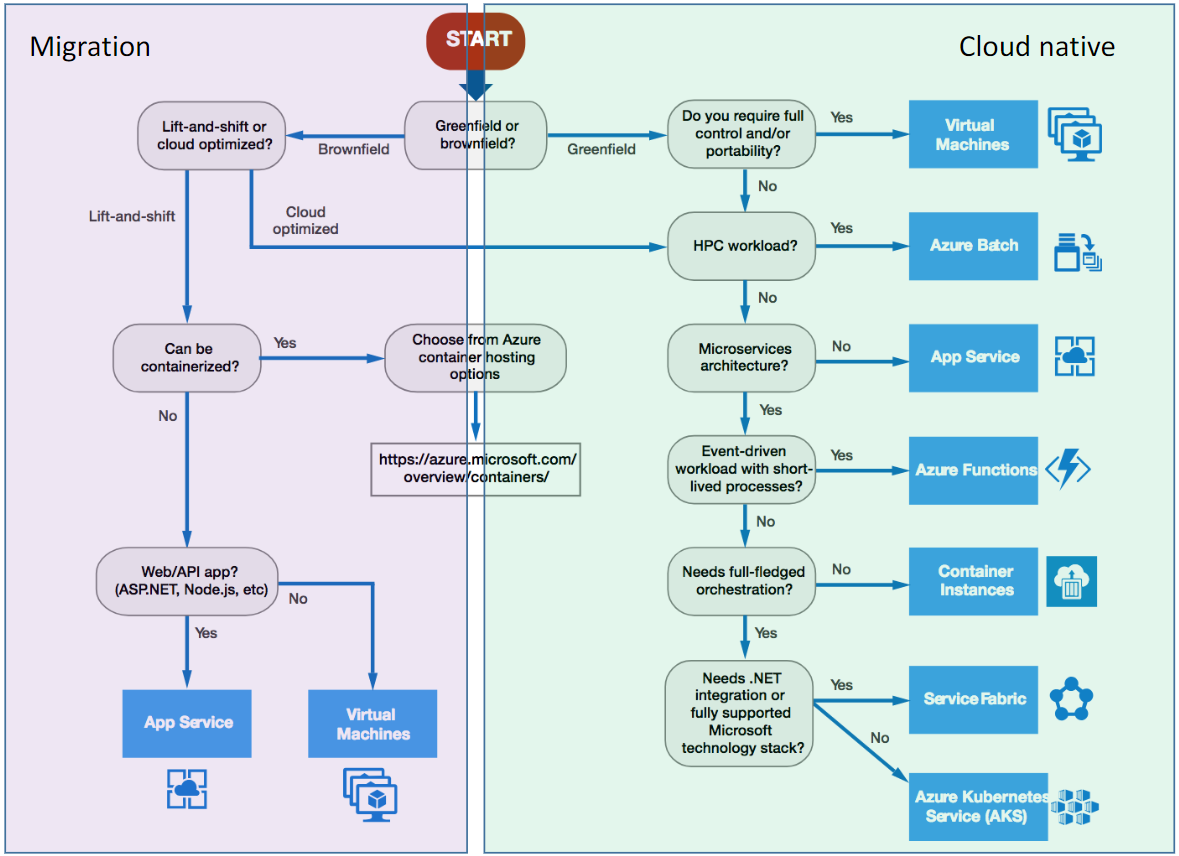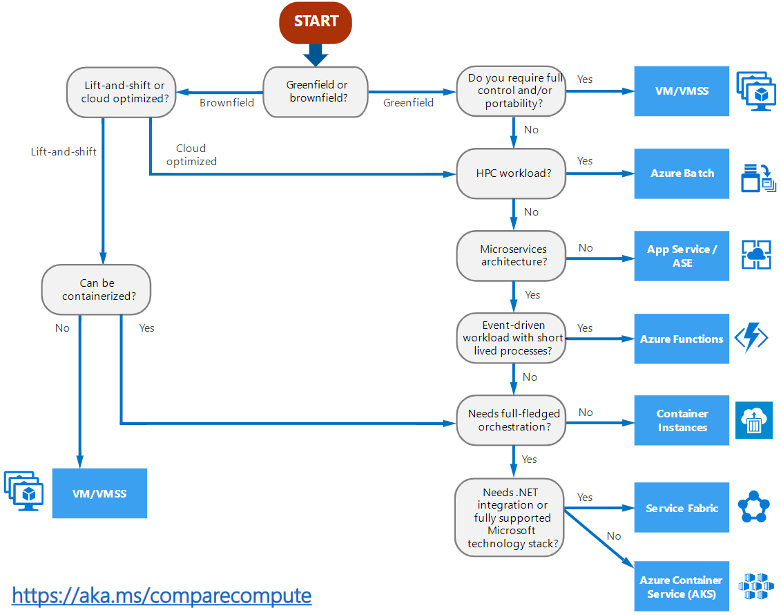 - Decision Matrix for the compute options on Azure