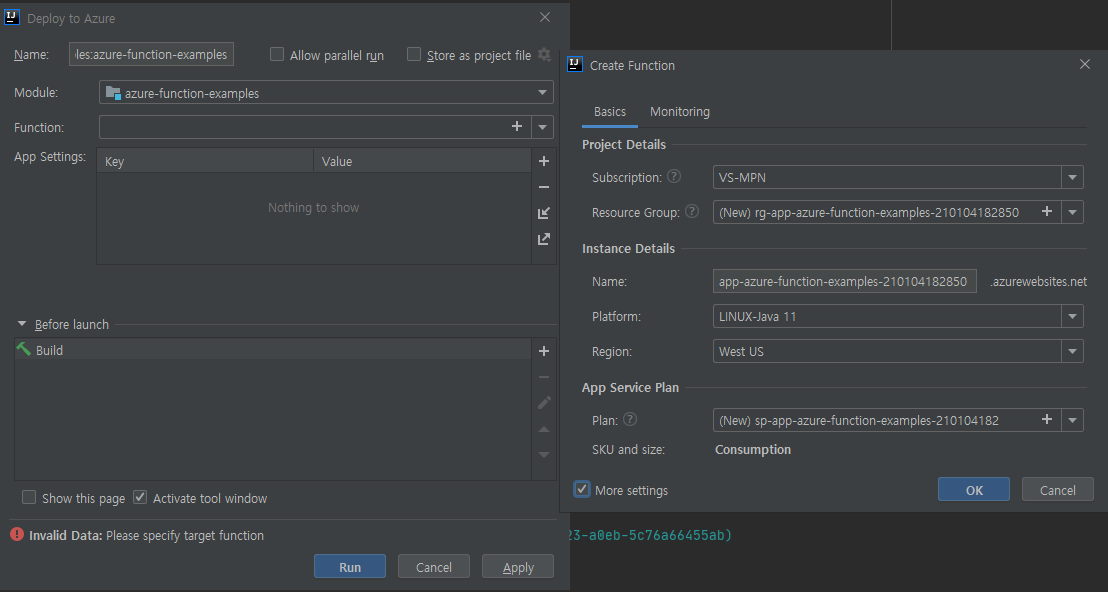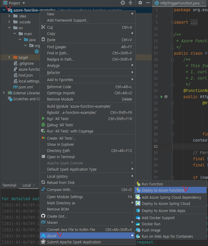 • Maven명령으로 Azure-functions를 실행 합니다.