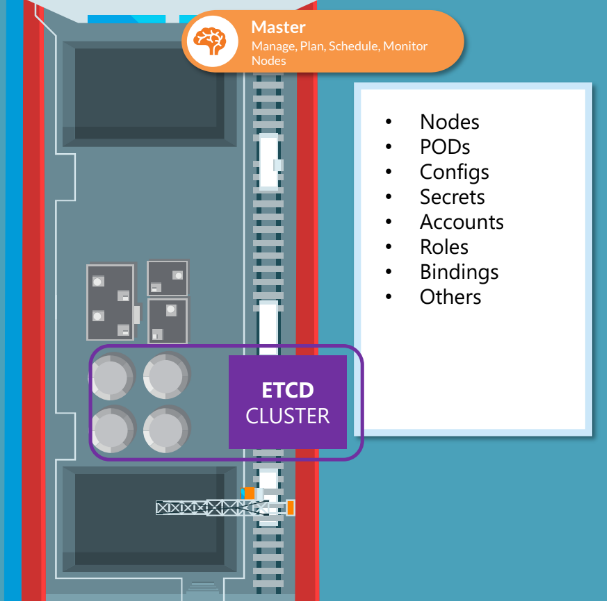 $ kubectl get pods -n kube-system NAMESPACE NAME READY STATUS RESTARTS AGE kube-system coredns-78fcdf6894-prwvl 1/1 Running 0 1h kube-system coredns-78fcdf6894-vqd9w 1/1 Running 0 1h kube-system etcd-master 1/1 Running 0 1h kube-system kube-apiserver-master 1/1 Running 0 1h kube-system kube-controller-manager-master 1/1 Running 0 1h kube-system kube-proxy-f6k26 1/1 Running 0 1h kube-system kube-proxy-hnzsw 1/1 Running 0 1h kube-system kube-scheduler-master 1/1 Running 0 1h kube-system weave-net-924k8 2/2 Running 1 1h kube-system weave-net-hzfcz 2/2 Running 1 1h NAMESPACE NAME READY STATUS RESTARTS AGE kube-system coredns-78fcdf6894-prwvl $ kubectl exec etcd-master –n kube-system etcdctl get / --prefix –keys-only /registry/apiregistration.k8s.io/apiservices/v1. /registry/apiregistration.k8s.io/apiservices/v1.apps /registry/apiregistration.k8s.io/apiservices/v1.authentication.k8s.io /registry/apiregistration.k8s.io/apiservices/v1.authorization.k8s.io /registry/apiregistration.k8s.io/apiservices/v1.autoscaling /registry/apiregistration.k8s.io/apiservices/v1.batch /registry/apiregistration.k8s.io/apiservices/v1.networking.k8s.io /registry/apiregistration.k8s.io/apiservices/v1.rbac.authorization.k8s.io /registry/apiregistration.k8s.io/apiservices/v1.storage.k8s.io /registry/apiregistration.k8s.io/apiservices/v1beta1.admissionregistration.k8s.io