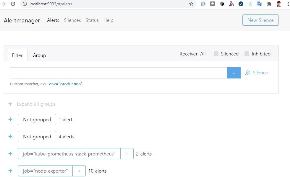 sansae@win10pro-worksp:$ kubectl port-forward service/kube-prometheus-stack-alertmanager 9093:9093 -n monitor-po
