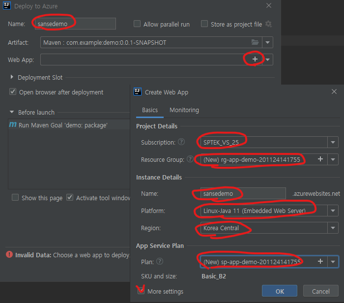 - More settings를 체크하여 상세 정보를 입력합니다.