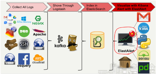 Yelp 에서도 ELK로 로그를 수집/관리하고 있고 Kibana로 데이터를 쿼리하고 시각화 하고 있지만 데이터를 통한 알람 기능이 필요하여 직접 만들어 오픈소스로 공개했습니다.