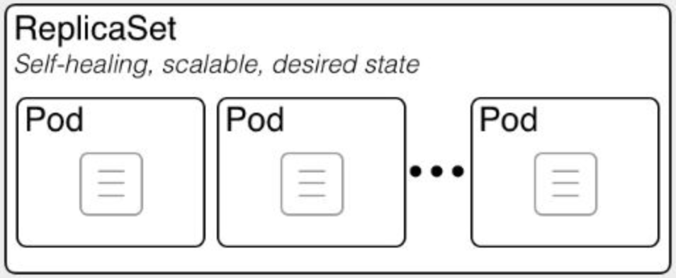 ReplicaSet은 애플리케이션에 대하여 지정된 수의 동일한 복사본(복제본)이 항상 실행되도록 보장합니다.